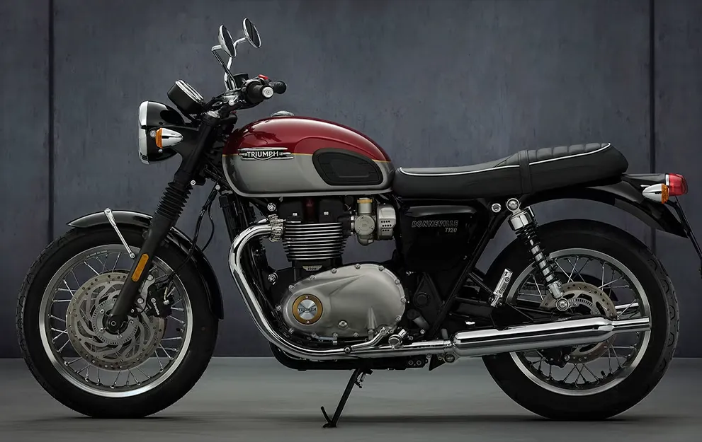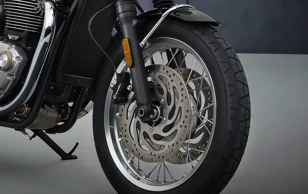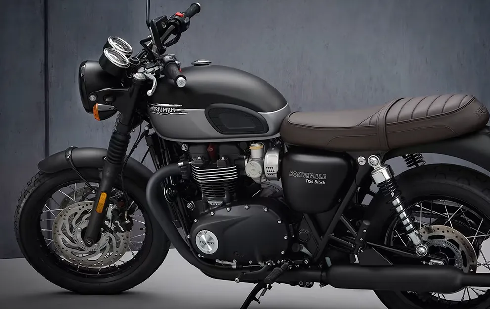 Presença imponente, com acabamento escuro robusto desde o motor até o escapamento duplo ascendente, e rodas raiadas clássicas. A invocada e sombria T120 Black é a definição do estilo sofisticado.