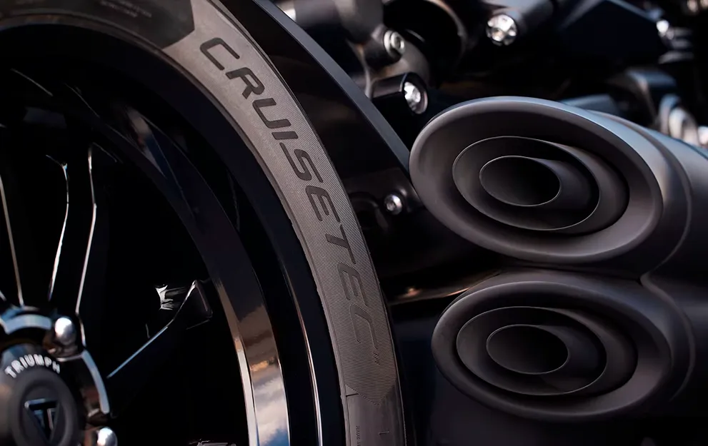 Os materiais usados em toda a Rocket 3 Storm foram cuidadosamente escolhidos para proporcionar uma personalidade sombria com um acabamento da mais alta qualidade. Da tampa de admissão com revestimento em pó Crinkle Black aos coletores de escapamento hidroformados, a atenção aos detalhes é inigualável.