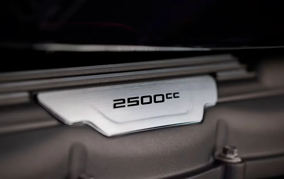 A mais recente evolução do motor de motocicleta de maior capacidade em produção do mundo. O motor tricilíndrico de 2.458 cc produz incríveis 225 NM de torque com 182 cv de potência máxima, permitindo uma aceleração explosiva e instantânea, em qualquer marcha.