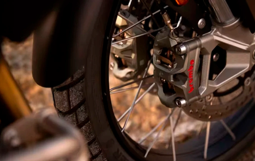 Projetada para as aventuras mais exigentes, com suspensão Showa de longo curso para enfrentar qualquer terreno.