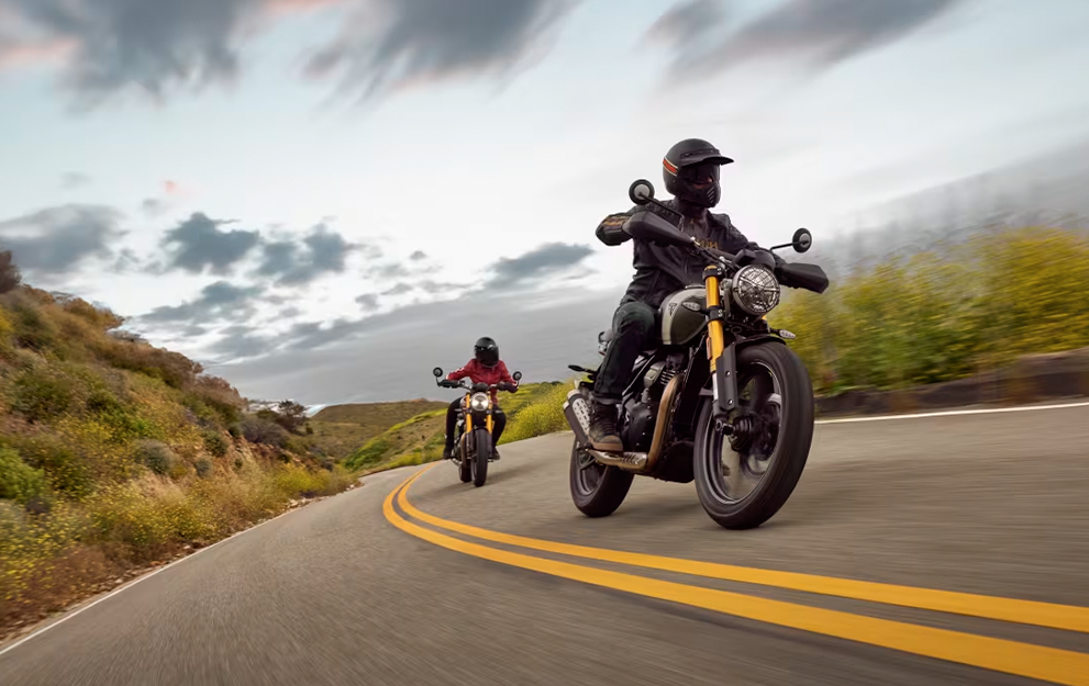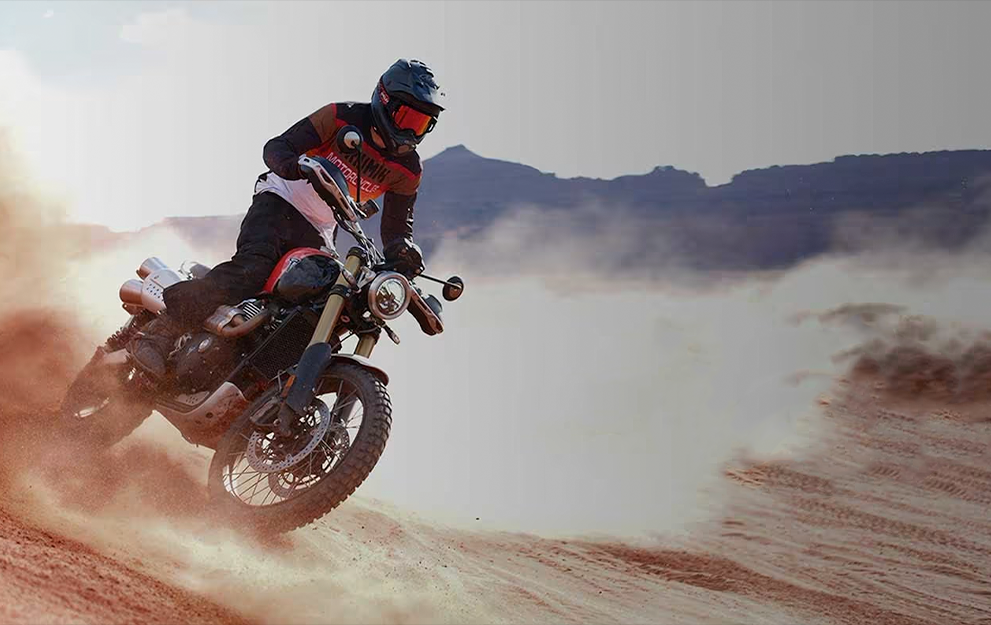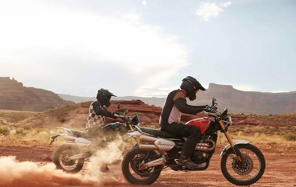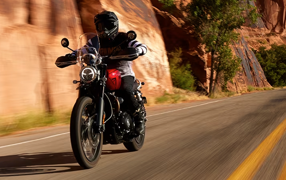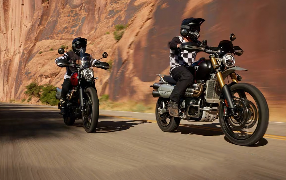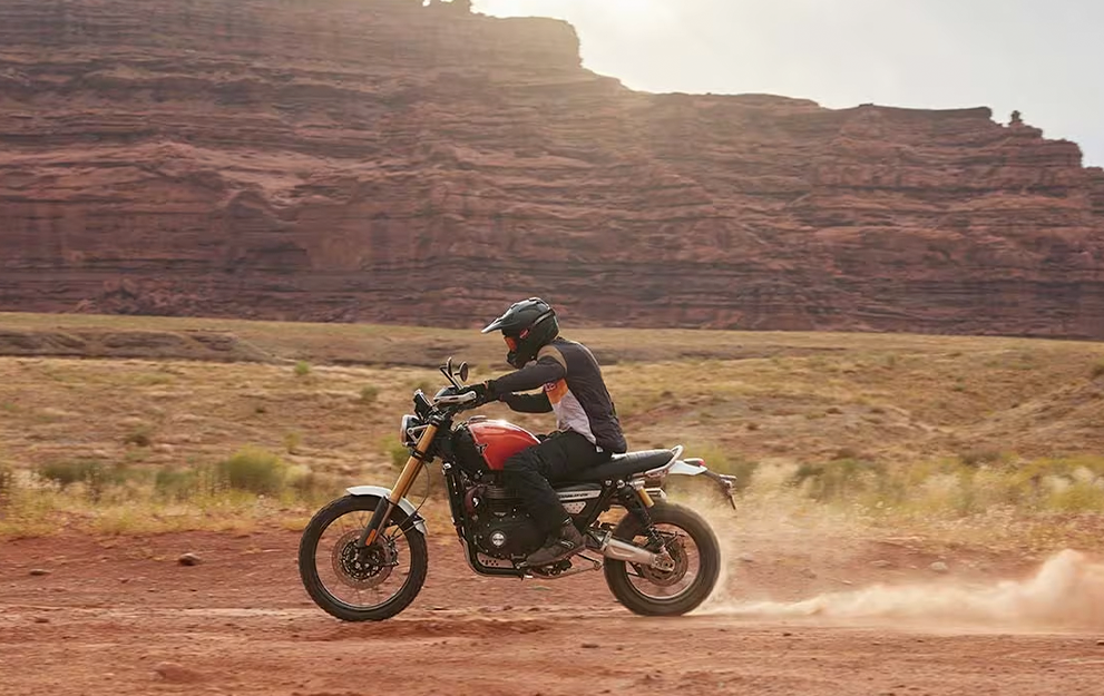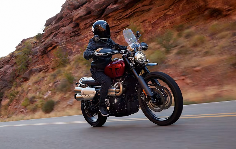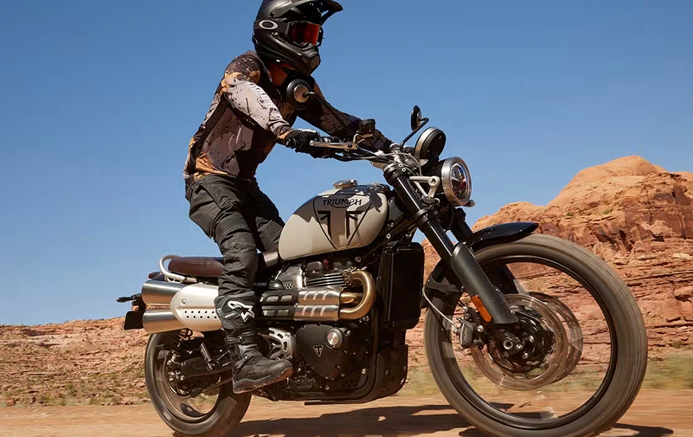 O motor Bonneville 1200cc bicilíndrico, com afinação Scrambler específica, oferece uma resposta do acelerador emocionante e cheia de torque, com potência suave e controlável para proporcionar um desempenho sem esforço, tanto na estrada quanto no off-road.